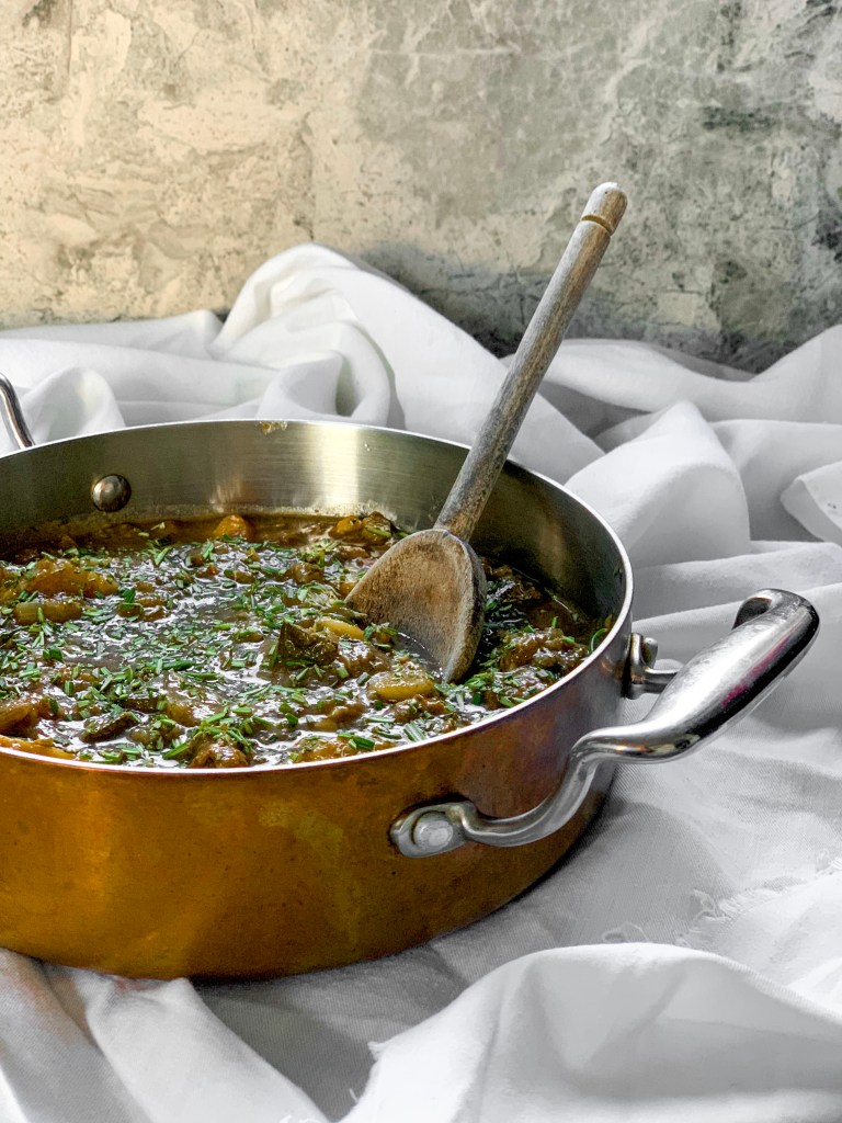 I would suggest some thickly cut mushrooms in place of the lamb, and perhaps throw in an extra vegetable, say an aubergine cut into small chunks or maybe some carrots. You’d would also need to swap the stock to a vegetable based one, in which case I do recommend just stirring through a spoonful of Marmite to the finished stew, just to deepen its rib-sticking appeal.