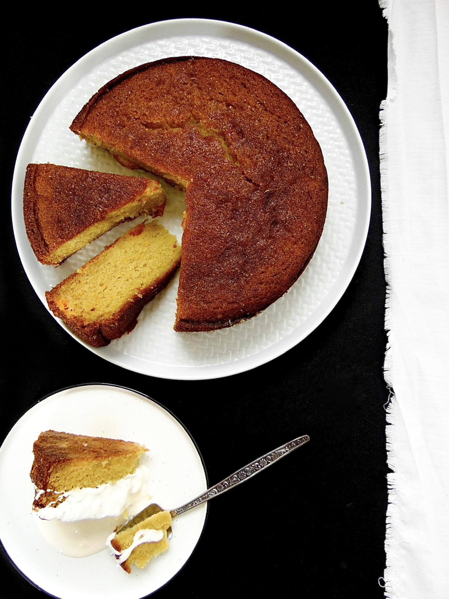 I love plain cakes. Their subtle presence on the table offering a gentle welcome as opposed to a parade that their wildly decorated attention-seeking cake cousins offer. There is a time and a place for those towering thickly creamed cakes adorned with toys, trinkets, wrapped chocolate bars and inedible plants and flowers, but when time is of the essence and the place is your own kitchen, a simple cake with deep flavour is more often what the moment demands.