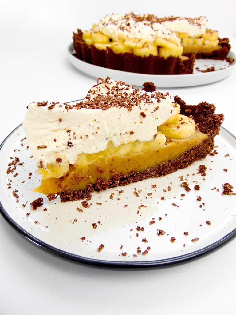 There are a few steps involved, yes – making the base, making the caramel, whipping the cream, assembling the pie – but none of these are hard tasks. I like to make a coffee, put on a familiar record, and allow myself to wallow in the experience. That’s not saying that you need an entire albums length to pull this together, but if there’s an opportunity for me to potter around the kitchen to a Blondie record while slicing bananas and making caramel, then I’m going to take it.