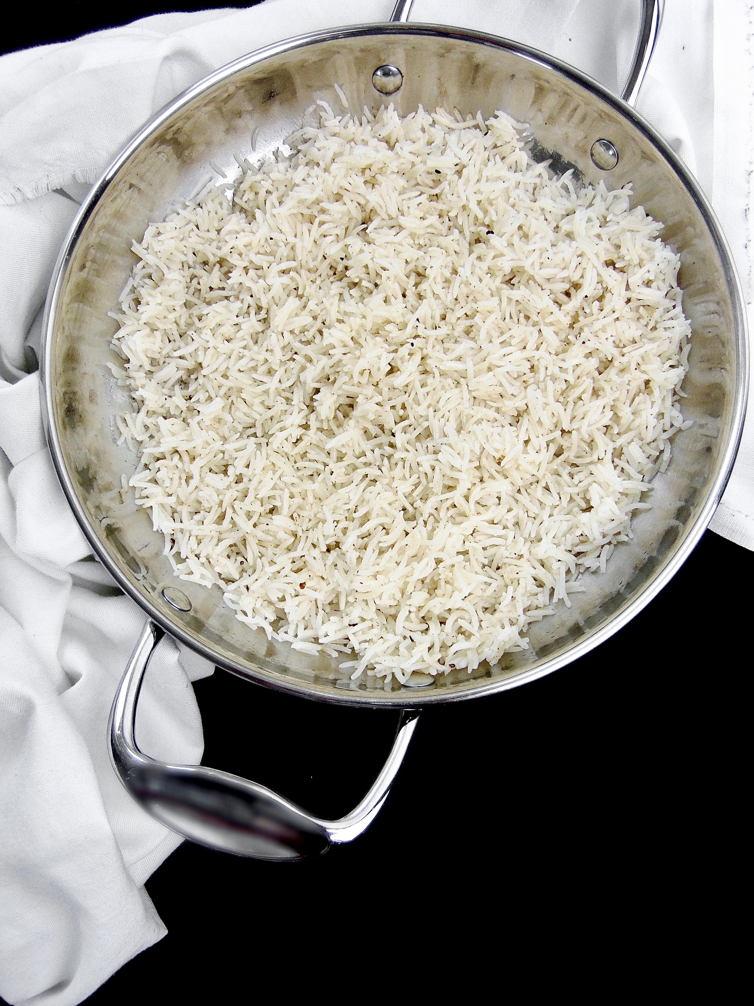 Pour in 500ml of hot water from the kettle and tightly scrunch some foil on top of the dish. Put the dish in an oven preheated to 180°C for 20 – 25 minutes. Once the time is up, remove from the oven, fluff the rice up with a fork and place a tea towel over the top of the dish. Leave this to stand while you get on with the curry.