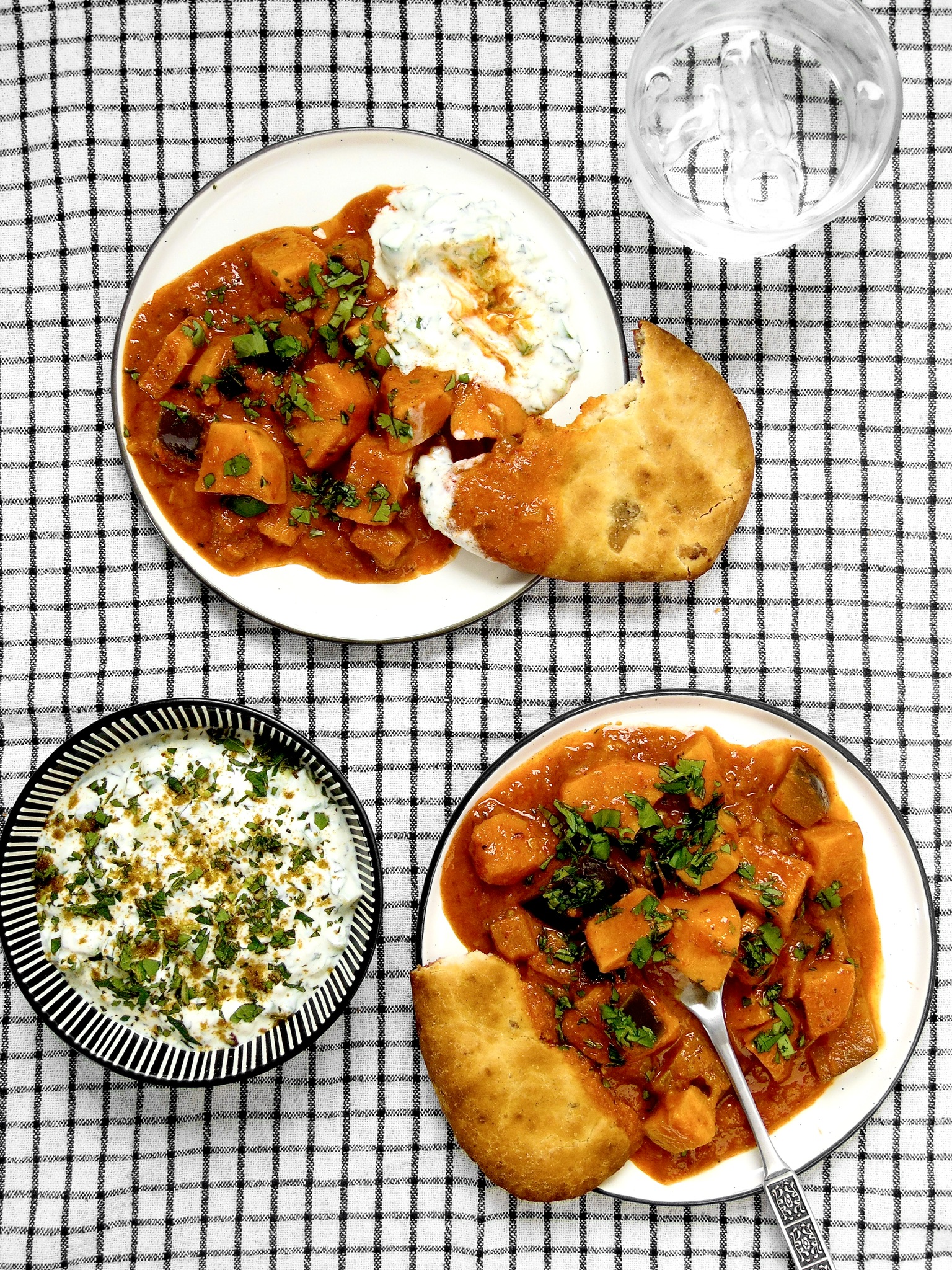 It’s packed with vibrant and warming spices and both the aubergine and sweet potato act as sponge vessels that carry them, so every mouthful is as exciting as the next.