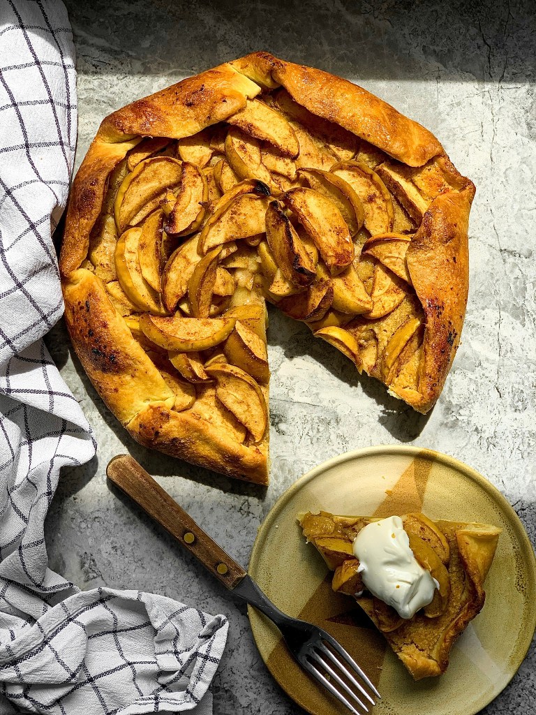I went through so many motions of how I was going to pull this together – would I do some kind of deep-dish pie or would I caramelise the apples in a skillet, put the pastry on top, put it in the oven and flip it over etc but all my ideas just kept coming back to this super simple, small, beautiful, flaky galette.