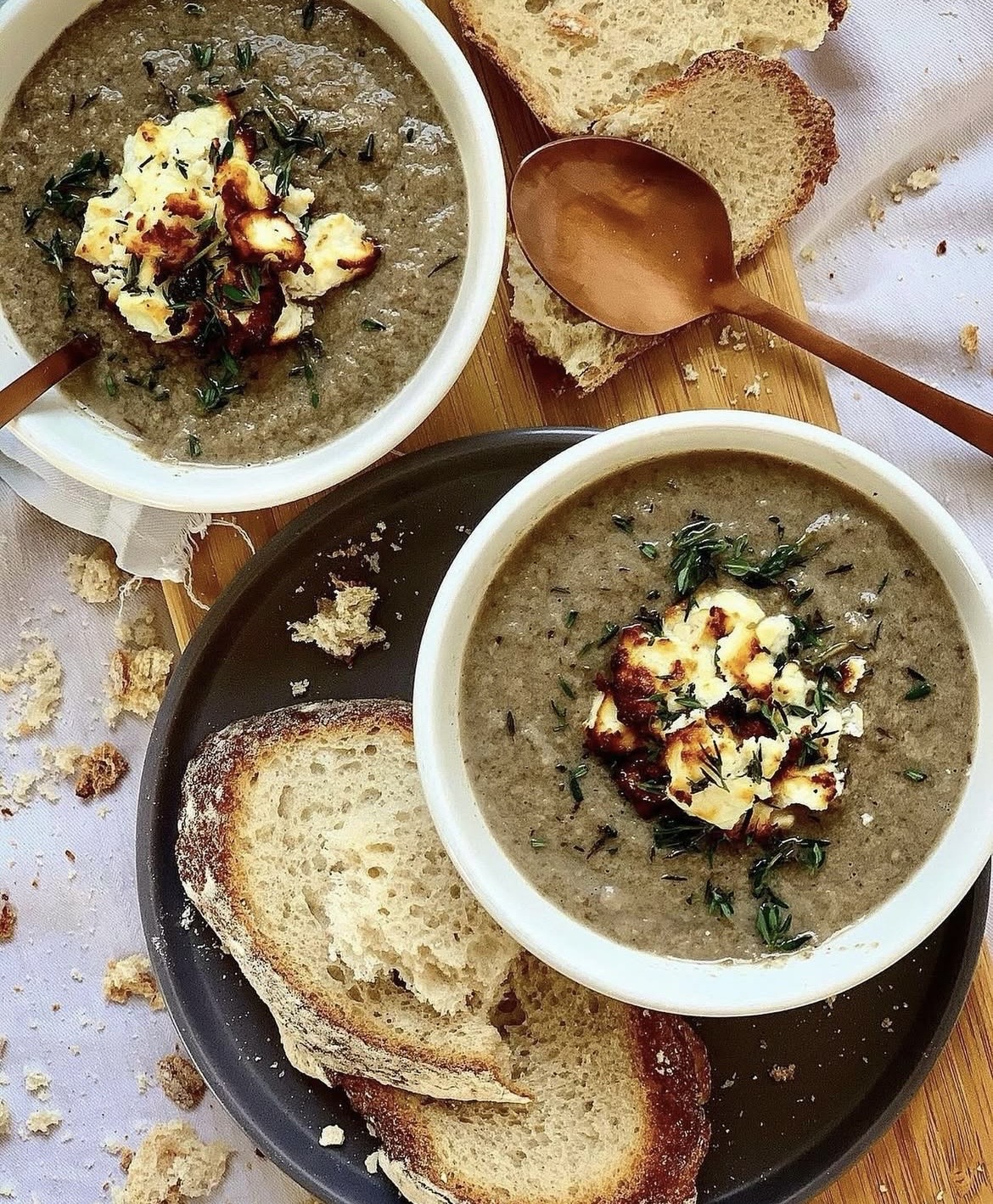 - Serve the soup with a further scattering of fresh thyme and some of the baked feta on top. Bread not optional.